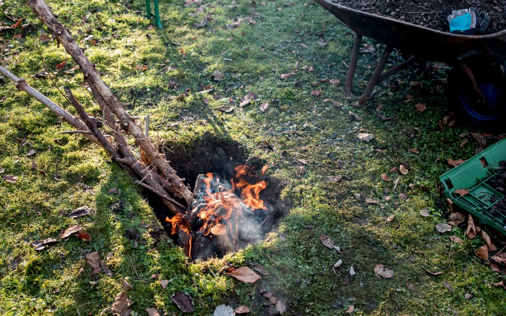 Das Feuer muss mindestens drei Stunden brennen, bevor man anfangen kann zu kochen. Ich hatte mir ausgerechnet: Wenn mein Gang um 21:30 Uhr auf den Tisch kommen soll und Fleisch und Gemüse etwa drei Stunden brauchen, muss ich spätestens um 14:00 Uhr mit dem Feuer machen loslegen. Feuer hat für mich immer eine gewisse Faszination – es ist so archaisch, so ursprünglich. Obwohl ich noch nie in einem Erdloch gekocht hatte, war ich mir ziemlich sicher, dass es klappt.