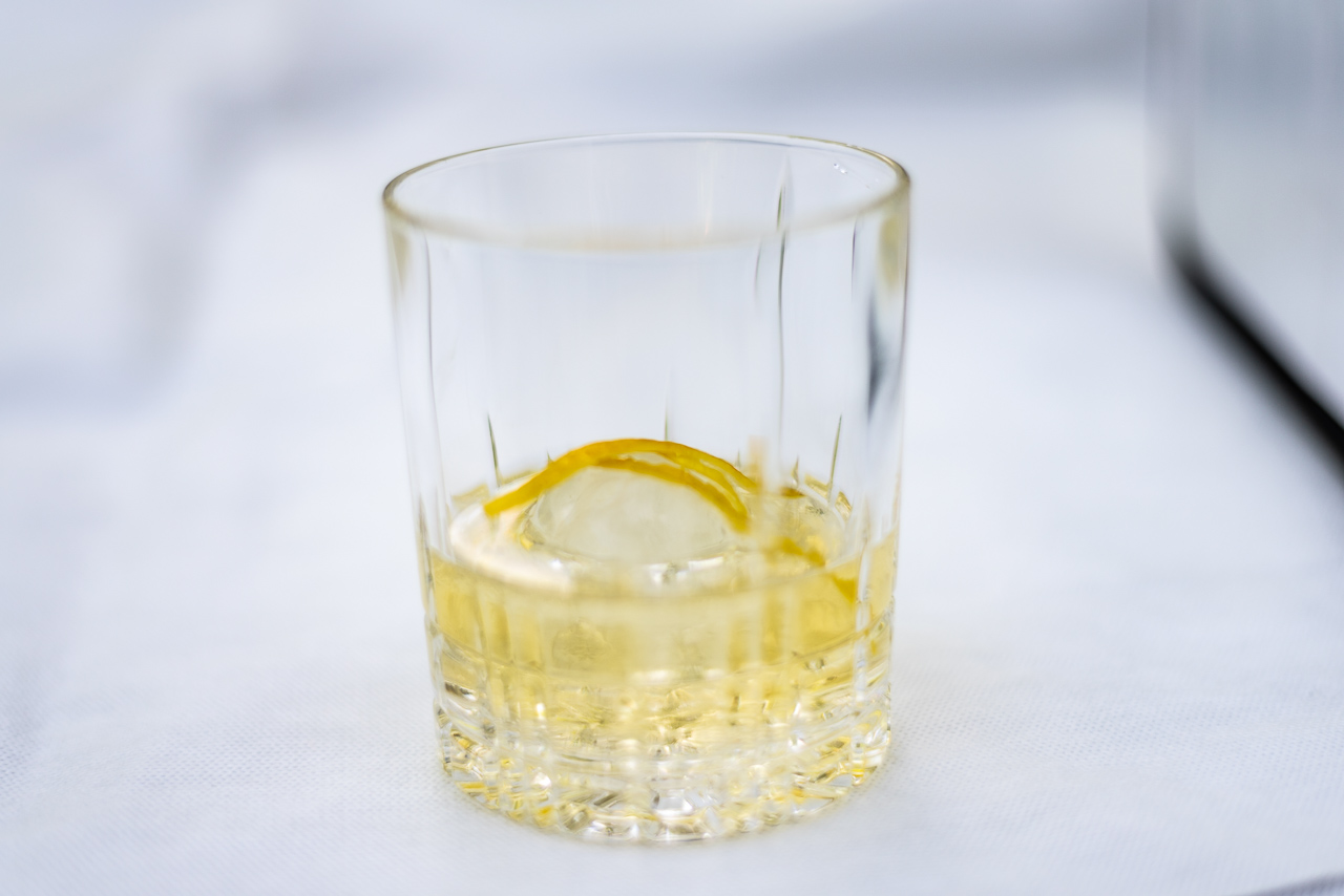 Der Golden Negroni ist, wie der Name schon induziert, im Gegensatz zu seinem großen Bruder, farblich leicht golden, ja fast schon farblos gehalten. Dies liegt zum einen an der Verwendung eines weißen Wermuts aber auch an der Verwendung eines fast farblosen Bitter Likörs. Den besonderen Kick erhält dieser Cocktail durch die Verwendung eines Barrel Aged Gins (in diesem Fall Boar Royal Gin) sowie einiger Spritzer Zitronensaft.
