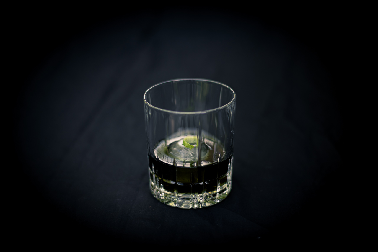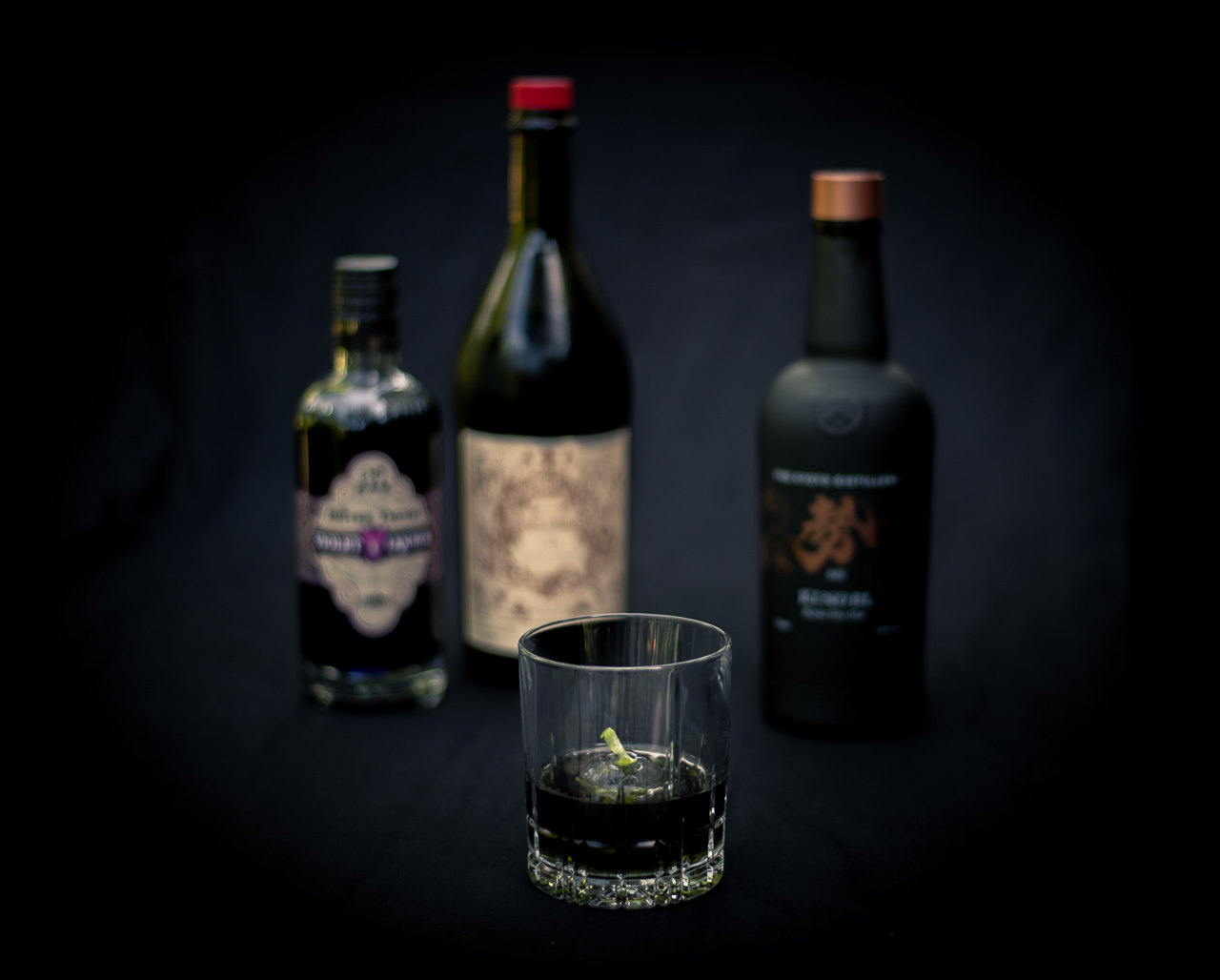 Das markante bei dem Negroni Triple X ist seine außergewöhnliche grün-schwarze Farbe, die durch die Verwendung des Violet Likörs (von The Bitter Truth) und des roten Wermuts von Carpano entsteht. Das dieser Cocktail etwas stärker ist als sein "roter Bruder" liegt daran, dass wir auf einen Navy Strength Gin mit 54,5% Alkoholgehalt aus dem Hause Kyoto Distillers zurückgegriffen haben. Dieses trägt auch zu seinem besonderen internationalen Flair (Italien, Deutschland, Japan) bei.