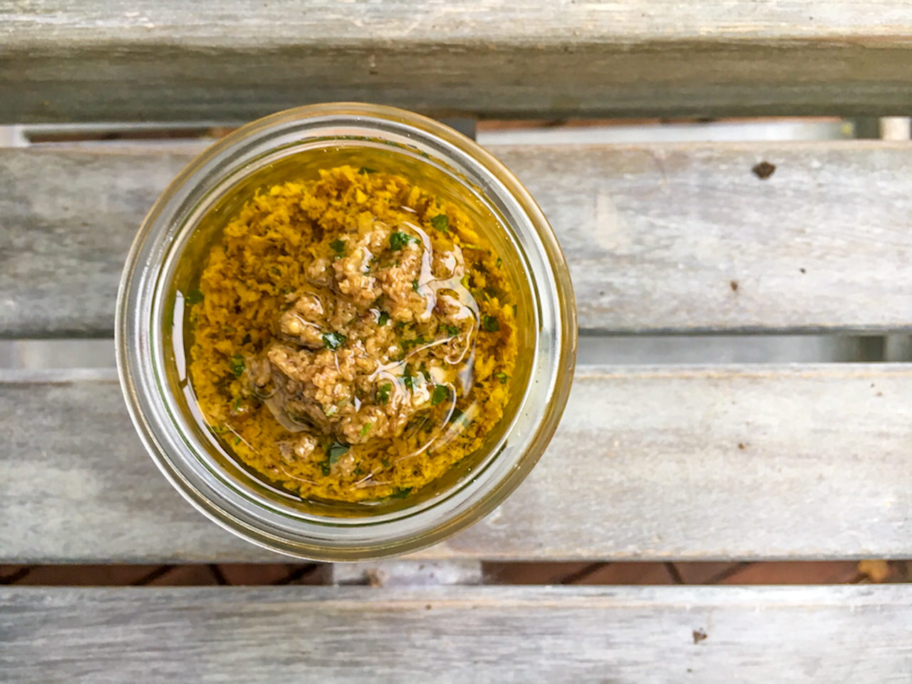 - Anbraten und zu Pesto verarbeiten