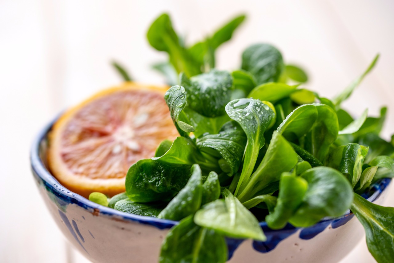 - Feldsalat mit Pistazien und Olivenöl zu einer cremigen Masse mixen. Salzen, Parmesan unterrühren, mit Orangensaft abschmecken