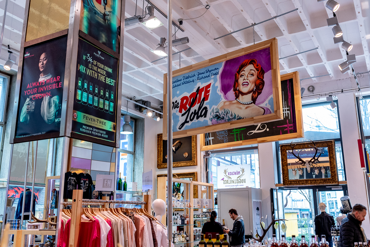 Als Andrea vor etwa zweieinhalb Jahren ihren Lifestyle-Store in der Münchner Altstadt, eröffnet hat, gab es einige Kritiker, die gesagt haben, dass so etwas in München nicht funktionieren kann. Aber davon hat sich die Augsburgerin – Gott sei Dank – nicht abschrecken lassen. Und ja, wer das erste Mal den geräumigen Laden betritt ist wohlmöglicherweise etwas verwirrt, denn ein Spirituosen-Geschäft sieht anders aus. Auch unter einem Fashion- oder Schmuckshop stellen wir uns typischerweise etwas anders vor. Zu bunt, zu poppig, zu hipp könnte man meinen. Dass das hier wenig mit den üblichen Spirituosenläden zu tun hat ist offensichtlich. Aber das ist gut so und es ist auch nicht der Anspruch von Andrea ein "Shop von der Stange" sein zu wollen. Denn das was Kaufhof, Metro und Co. zu wenig haben, gibt es hier im Überfluss...eine coole entspannte Atmosphäre, mit individueller Beratung, hipper Musik und Stil im Überfluss. Augenscheinlich geht es nicht vorrangig darum, Konkurrenz von den "Normalo-Geschäften" sein zu wollen, dafür ist man zu "anders".