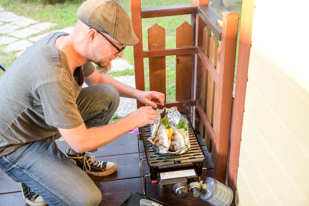 Die Fische waren super – vielleicht ein ganz klein wenig zu durch gegart. Seit diesem Abend schenke ich dem Temperaturregler an der Seite deutlich mehr Aufmerksamkeit. Der Grill kann nämlich nicht nur Vollgas – er kann auch moderat. Das ist dann zwar immer noch kein Indirektes-Grillen wie ich es zu Hause so gerne praktiziere, aber kommt dem ganzen schon recht nahe.