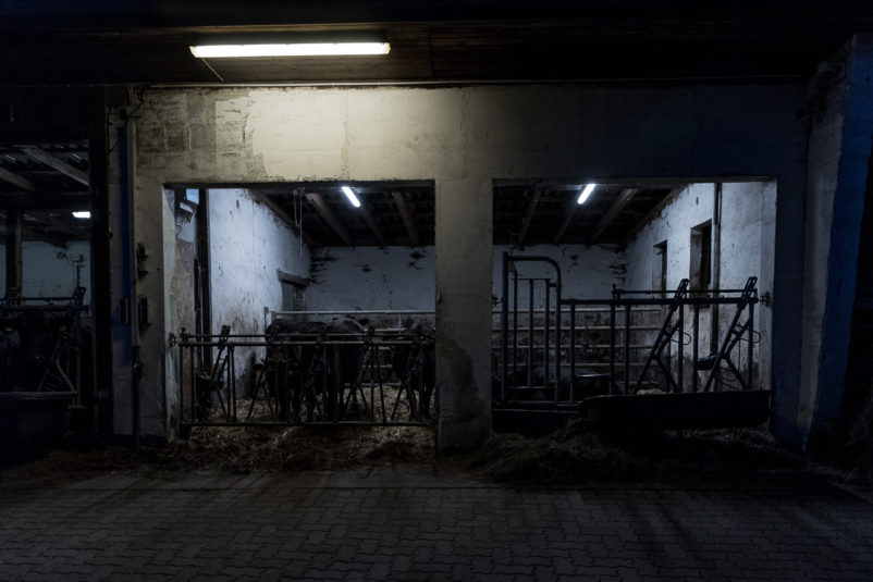 Die Schlachtung war für den frühen Morgen angesetzt. Ich komme am Abend davor auf dem Hof an. Bina ist gerade dabei den Anhänger eines befreundeten Landwirts vor die Stallungen zu rangieren. In diesen Hänger soll der Bulle am nächsten Morgen verladen und zum Metzger gefahren werden.