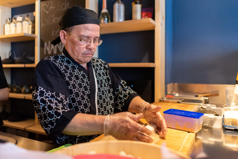 Felix Runge: Eigentlich schon so vor etwa zwei bis drei Jahren. Zum einen essen wir selber sehr gerne japanisch und zum anderen wurden wir beim Thai Fresh Cuisine auch immer nach Sushi gefragt. Wir kannten selber jetzt auch kein Sushi Restaurants in München Pasing, außer jetzt die paar Running Sushi Läden, die aber, wenn man es genauer betrachtet, kein richtiges Sushi anbieten. Für uns war es grundsätzlich schon länger eine Option, dass wir uns Vergrößerern aber dann halt mit etwas Japanischem. Wir haben so ein bisschen die Augen und Ohren offengehalten und nach einer geeigneten Location – eine die sich in der Nähe vom Thai befindet und auch bezahlbar ist – gesucht. Vor etwa einem halben Jahr, sind wir mit der Fläche hier fündig geworden und haben uns Anfang Januar dann endgültig dafür entschieden.