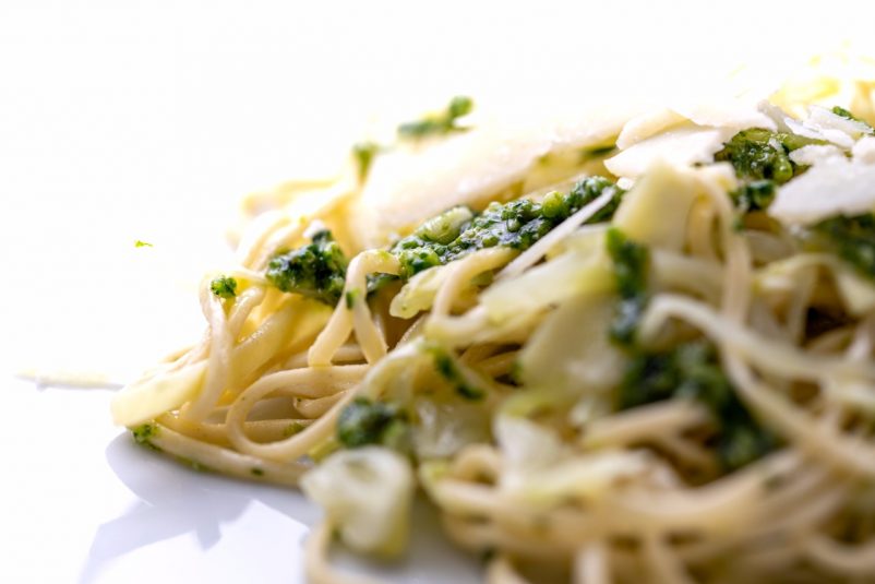Wusstet ihr, dass Pistazien zu den ältesten blühenden Kulturpflanzen überhaupt gehören? Es heißt, dass die Königin von Saba Pistazien zu einem Nahrungsmittel ernannte, das ausschließlich königlichen Familien zur Verfügung stünde, und sie es dem einfachen Volk verboten hat, diese für den persönlichen Verzehr anzubauen. (Quelle: Wikipedia) Das ist zum Glück längst Geschichte, und so könnt ihr auch ohne königlichen Hintergrund die Pasta mit Pastinaken und Pistazienpesto zubereiten.