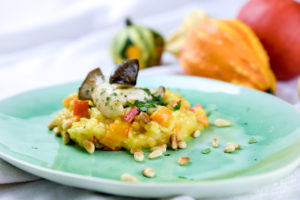 Was passt zu dieser Jahreszeit besser als ein herbstliches Risotto mit Kürbis? Antwort: ein Kürbisrisotto, das durch die Süße von getrockneten Aprikosen und der Säure vom Prosecco einen besonderen Charakter erhält.