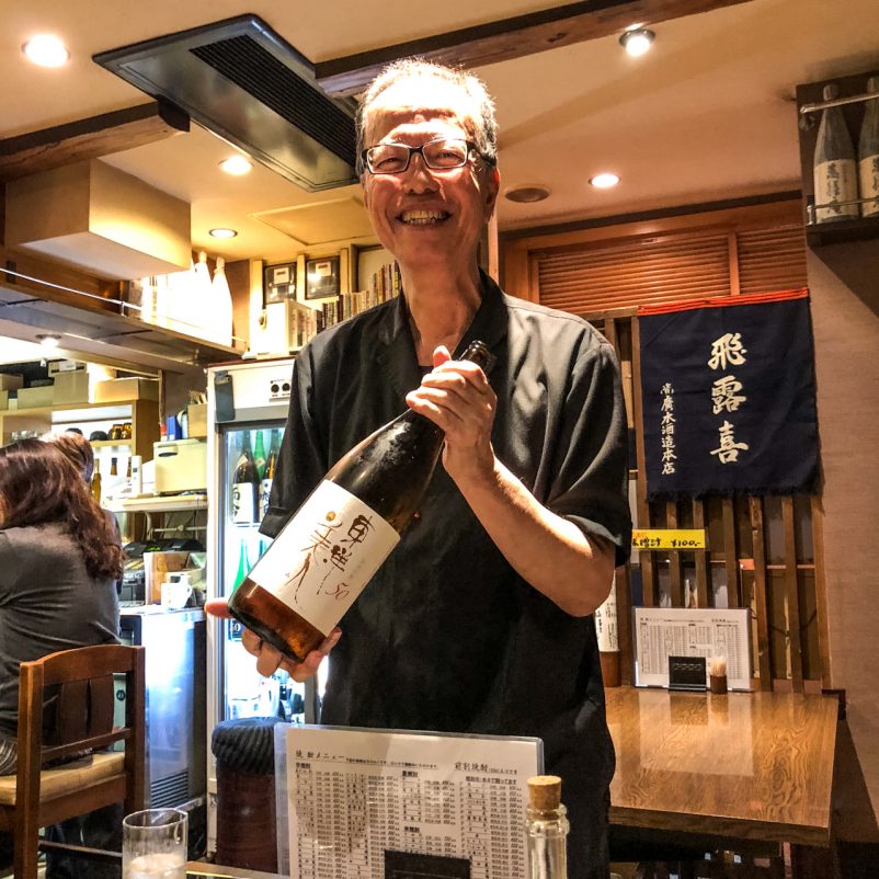 Hier trafen wir dann auf einen weiteren Freund von Max, Shota Maeda. Shota-san ist nicht nur ein Sake-Fan sondern auch ein verrückter Kerl (im Positiven gesprochen). Shota hat für einige Monate in Kanada gelebt und dort eine „Ausbildung“ zum Cowboy gemacht – kein Witz! Hierüber hat er sogar ein Buch geschrieben, welches leider nur in japanischer Sprache erhältlich ist. Heute betreibt Shota einen sehr coolen Shop mit hochwertigen Lederwaren und Lederaccessoires. Es war klar, dass wir in diesem zweiten Izakaya länger verweilen würden, denn es gab nicht nur eine Menge tollen Gesprächsstoff sondern auch der Besitzer war eine echte Koryphäe auf dem Gebiet von Sake.